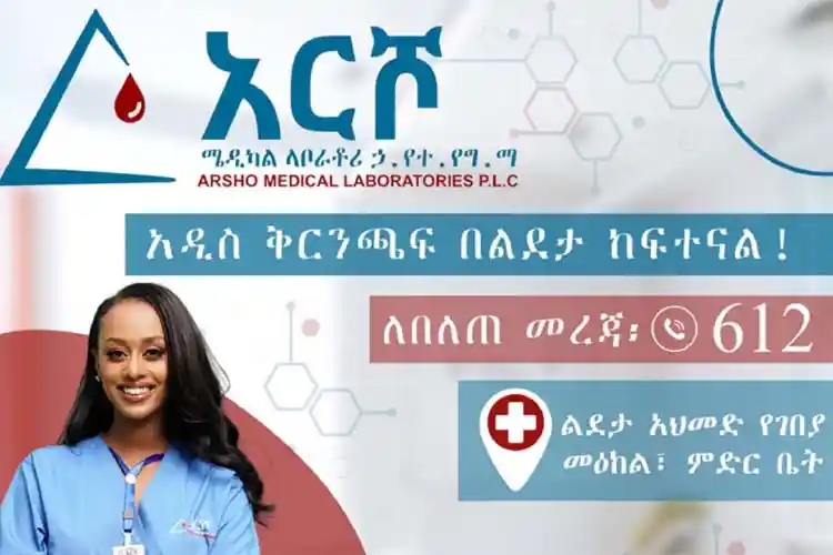 አስደሳች ዜና! አርሾ ሜዲካል ላብራቶሪ የህብረተሰባችን ፍላጎት አና ጥያቄ ተከትሎ በልደታ ፣ አህመድ የገበያ ማዕከል ፣ ምድር ላይ አዲስ ቅርንጫፍ መክፈታችንን ስናበስራችሁ በታላቅ ደስታ ነው። ጥራት ያለው የጤና ምር...
